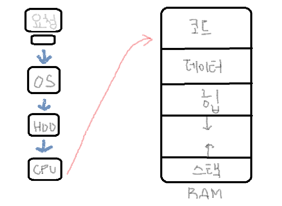 - 코드 영역: 프로그램의 실행 코드가 저장됨