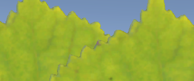 알파 블랜딩에 비해 외곽은 거칠게 표현되지만 반투명이 없어서 Z버퍼에 알파가 빠진 모양대로 쓸 수 있기 때문에 알파 소팅의 문제도 일어나지 않는다. PC에서는 연산도 빠르다!