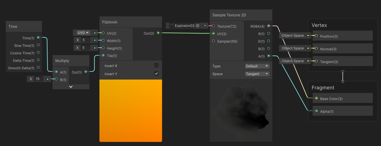 Flipbook이라는 노드를 사용해서 애니메이션이 나오도록 UV를 연결해준다. (대박신기해)